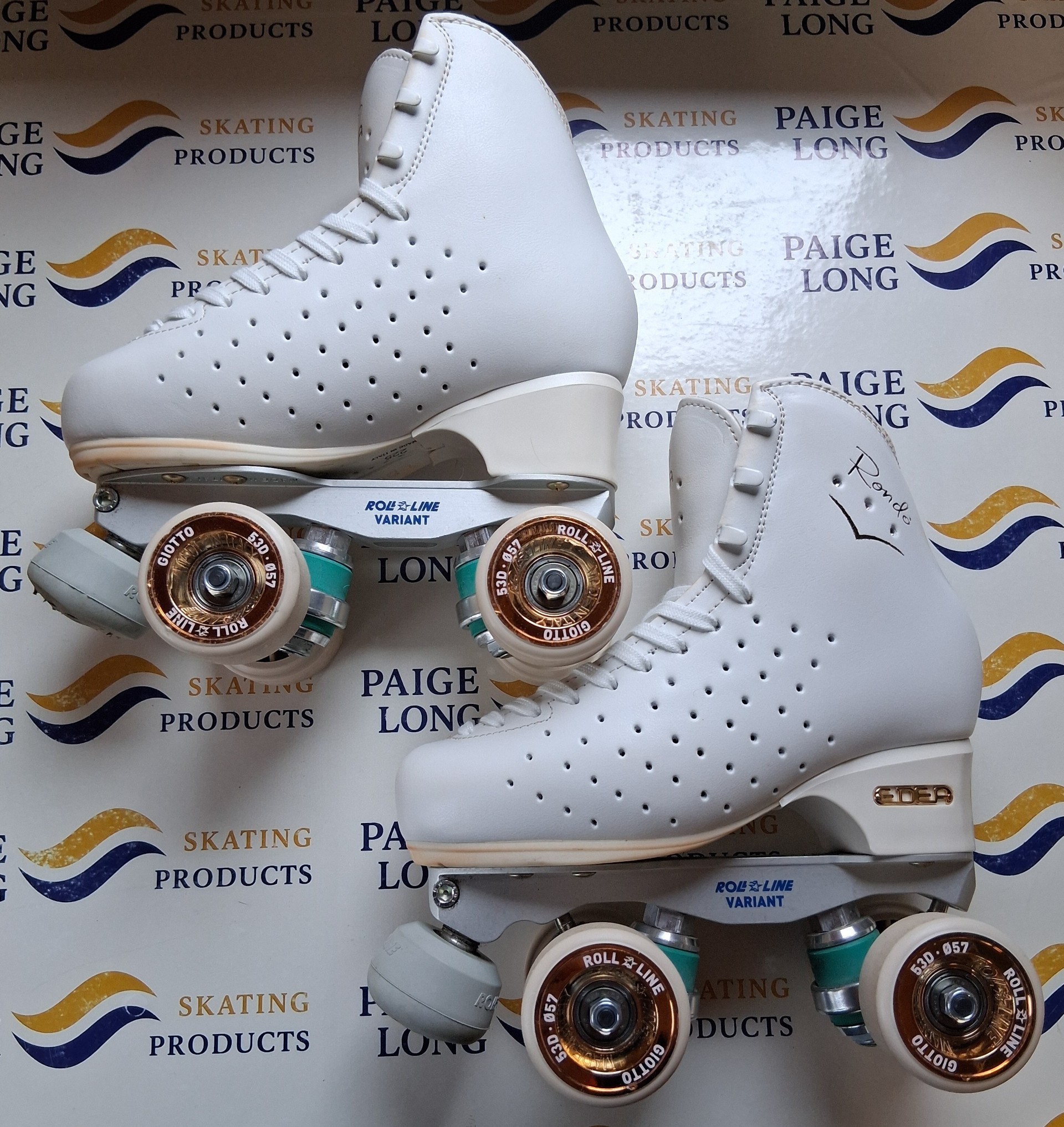 Second Hand Size 225 (Size 1.5) Skates, White, Rondo Boots with Variant Plate and Giotto Wheels in excellent condition.